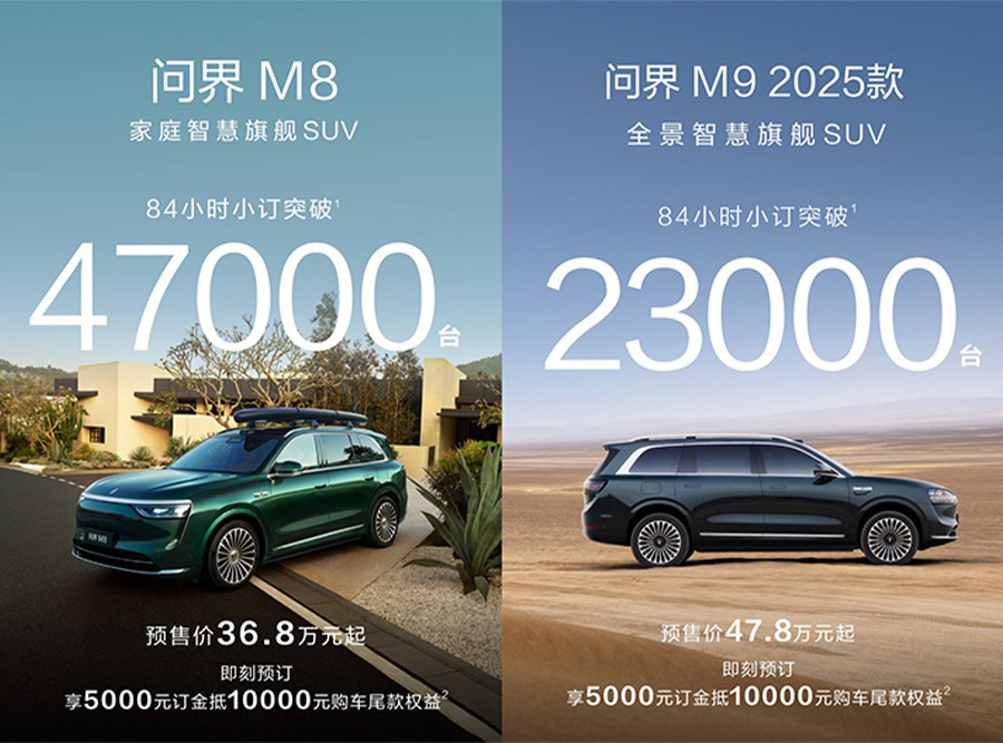 问界M8、M9:84小时总订单突破7万台